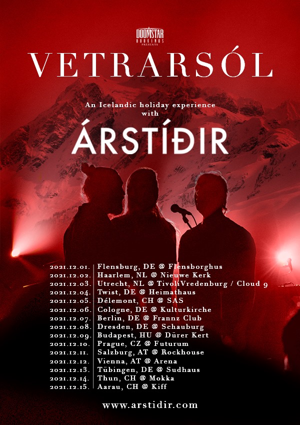 Seit 2018 hat Árstíðir die Tradition auf Europa ausgeweitet und nimmt die Show in den Wochen vor Weihnachten mit auf Tournee. Der Titel „Vetrarsól“ bedeutet übersetzt „Wintersonne“ – während des Konzerts erhellt die Band die winterliche Dunkelheit mit intimen Arrangements und harmonischem Gesang.